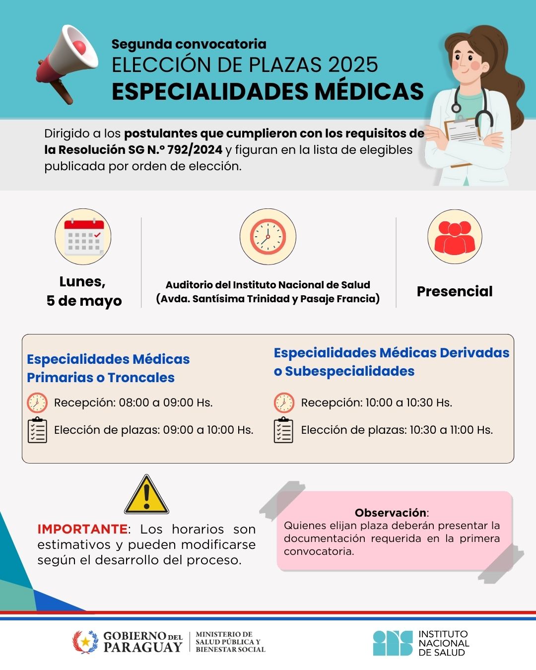 2ª Convocatoria – Elección de Plazas 2025 Especialidades Médicas