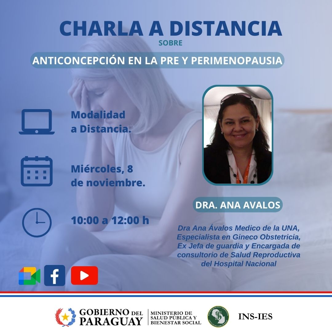 La charla estará a cargo de la Dra. Ana Ávalos, Médico de la UNA, Especialista en Gineco Obstetricia, Ex Jefa de guardia y Encargada de consultorio de Salud Reproductiva del Hospital Nacional.