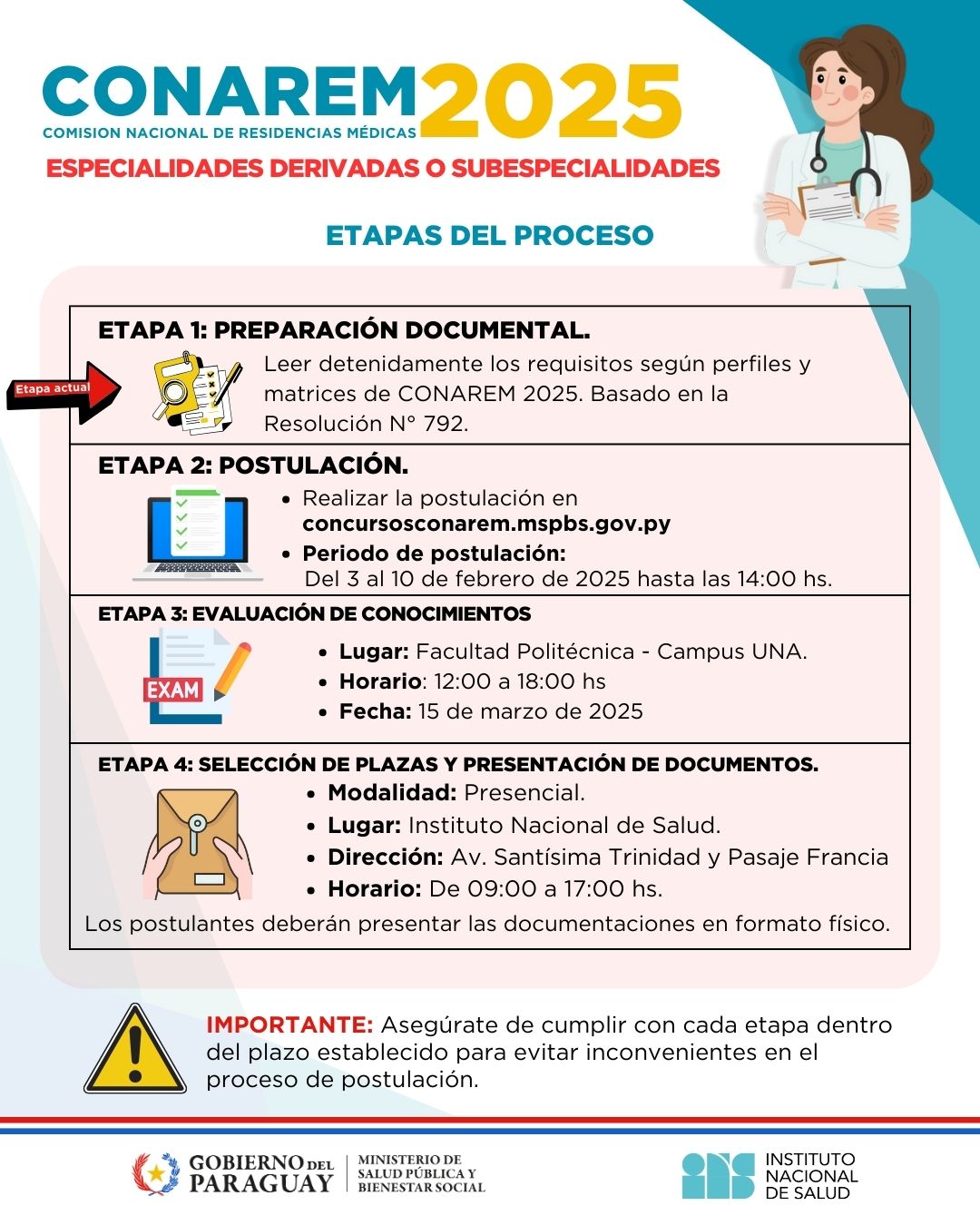 – Realizar la postulación en concursosconarem.mspbs.gov.py
