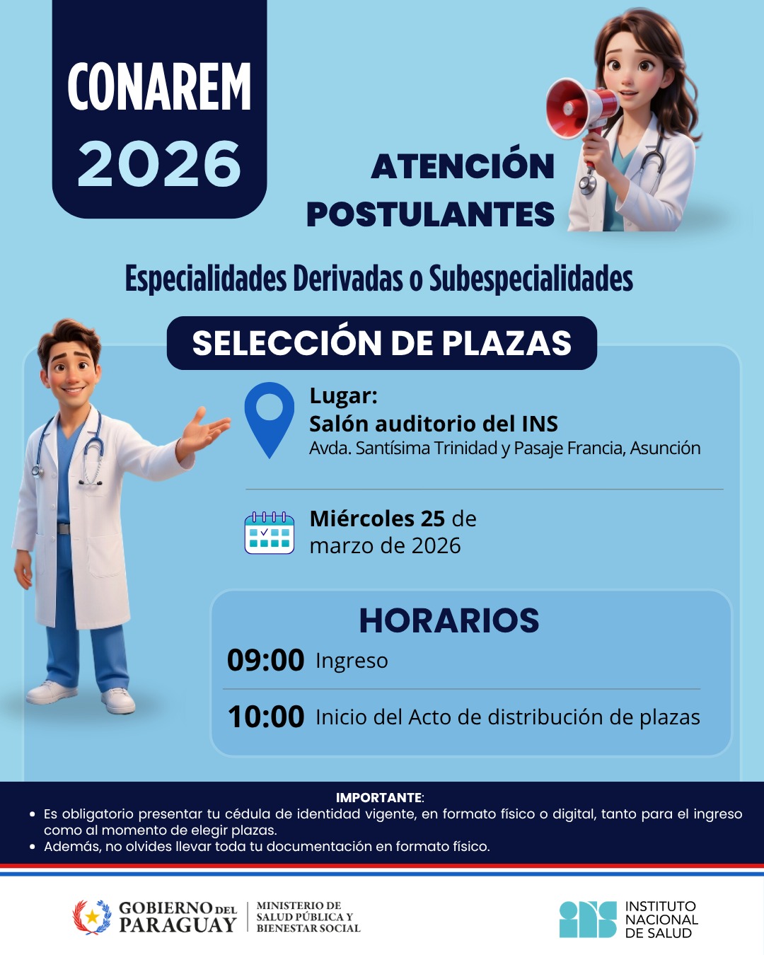 🕙 Inicio del acto de selección: 10:00 horas