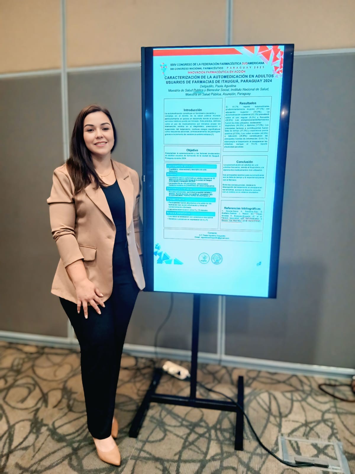 Durante el encuentro internacional, que congregó a profesionales, investigadores y académicos del ámbito farmacéutico y de la salud pública de toda la región, la Q.G. Delgadillo presentó los resultados de su tesis de maestría, un estudio que aborda problemáticas de alto impacto en la salud colectiva.