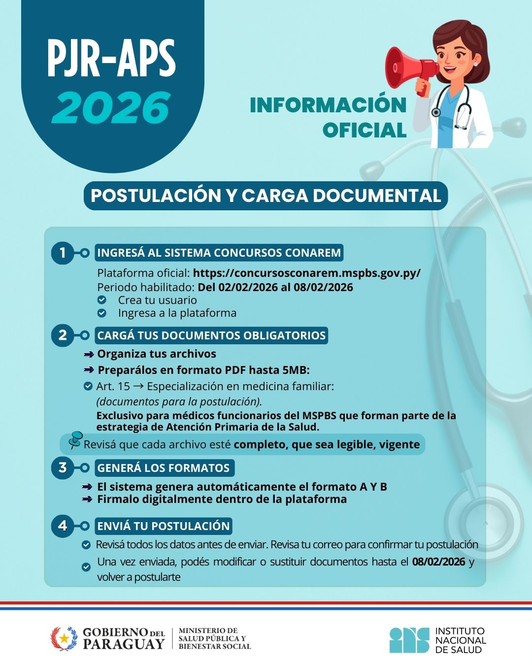 📌 Exclusivo para médicos funcionarios del MSPBS que integran la estrategia de Atención Primaria de la Salud (APS).