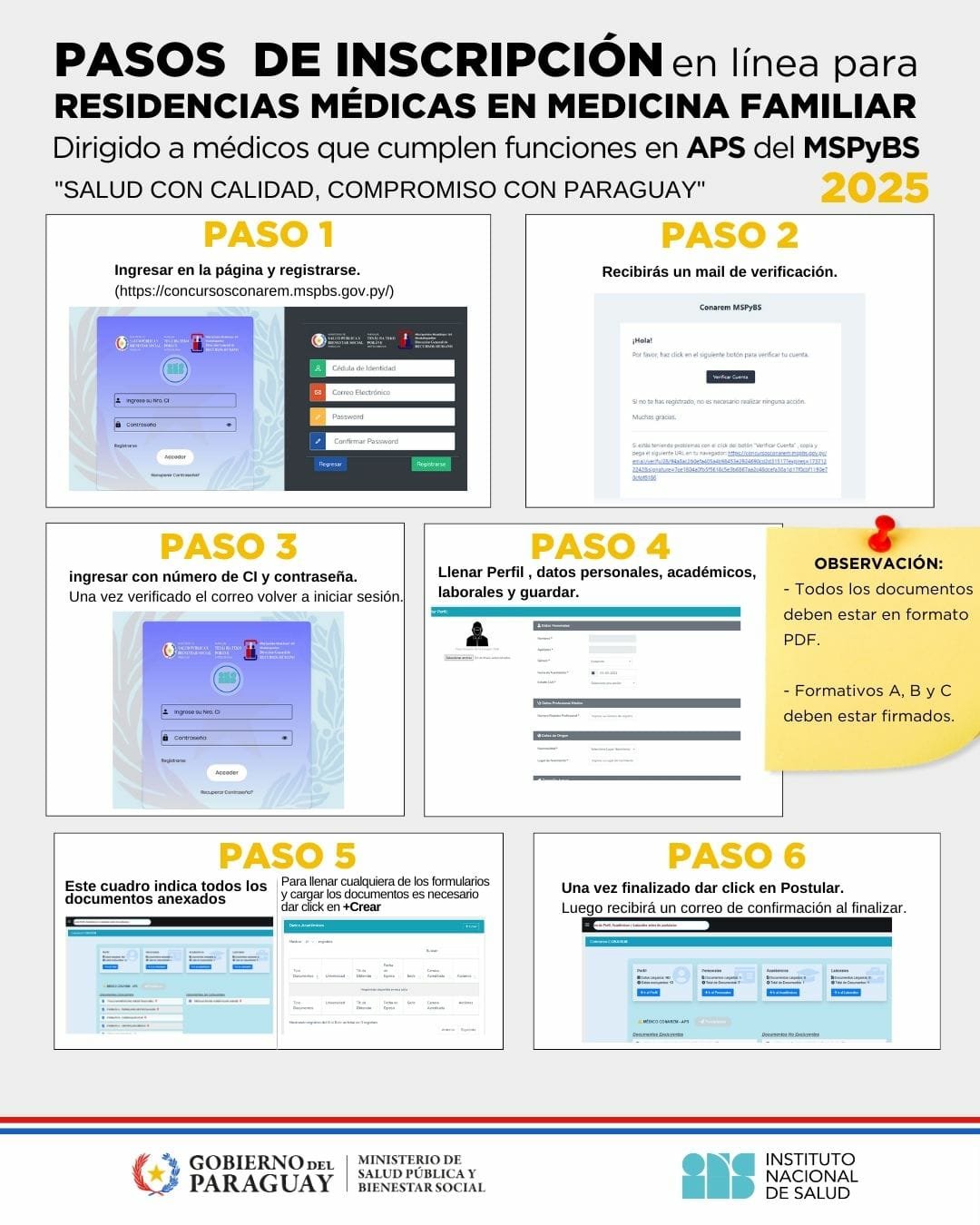 El Ministerio de Salud Pública y Bienestar Social, invita a los médicos interesados a postularse para las Residencias Médicas de la especialidad en Medicina Familiar, en el marco del Proyecto Estratégico de Formación de Médicos Especialistas «Dr. José Darío Ramírez Riveros».