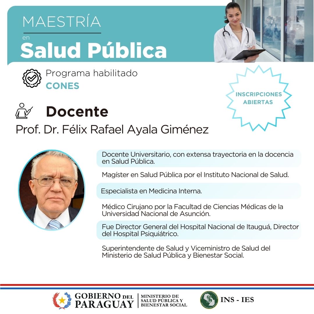 Maestría en Salud Pública: siguen abiertas las inscripciones en el Instituto Nacional de Salud. El programa está habilitado por el CONES.