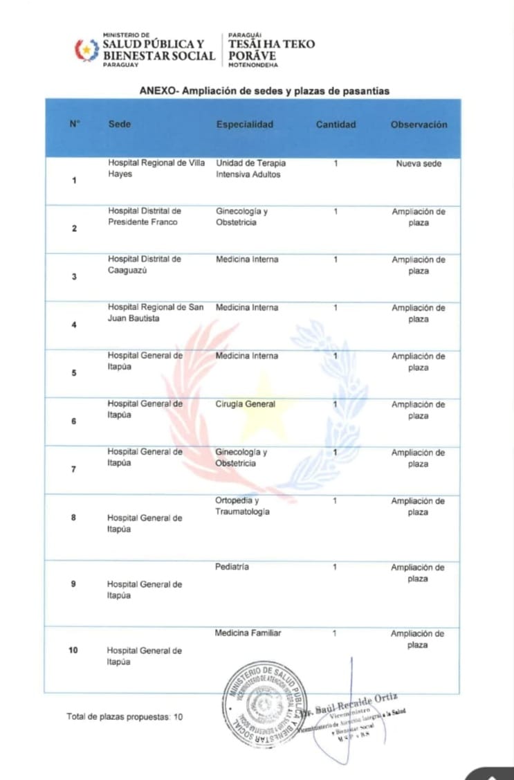 Formularios Formularios varios Normativas Resoluciones y Circulares Flyers: Flyers Publicados Otras documentaciones Curriculum Vitae Modelo de Constancia de culminación emitido por la Sede de Pasantía (Hospital) Cronogramas Cronograma de Elección de Sedes 2026 Actualizado al 06-03-2026 Cronograma de fechas y horarios para asignación de Sedes de Pasantías de Médicos Especialistas 2026 Lista de Sedes Listado de Sedes 2026 (Actualizado al 11/03/206) Ampliación de Sedes 2026 Ampliación de Sedes 2026 (Actualizado al 11/03/2026) Listado Oficial de Asignación de Sedes 2026 - Grupo Prioritario (Actualizado al 12/03/2026)