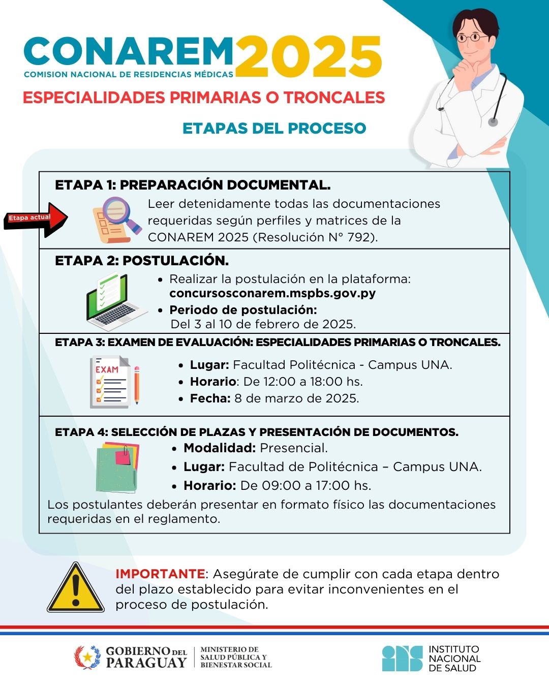 – Leer detenidamente todas las documentaciones requeridas según perfiles y matrices de la CONAREM 2025 (Resolución N° 792).