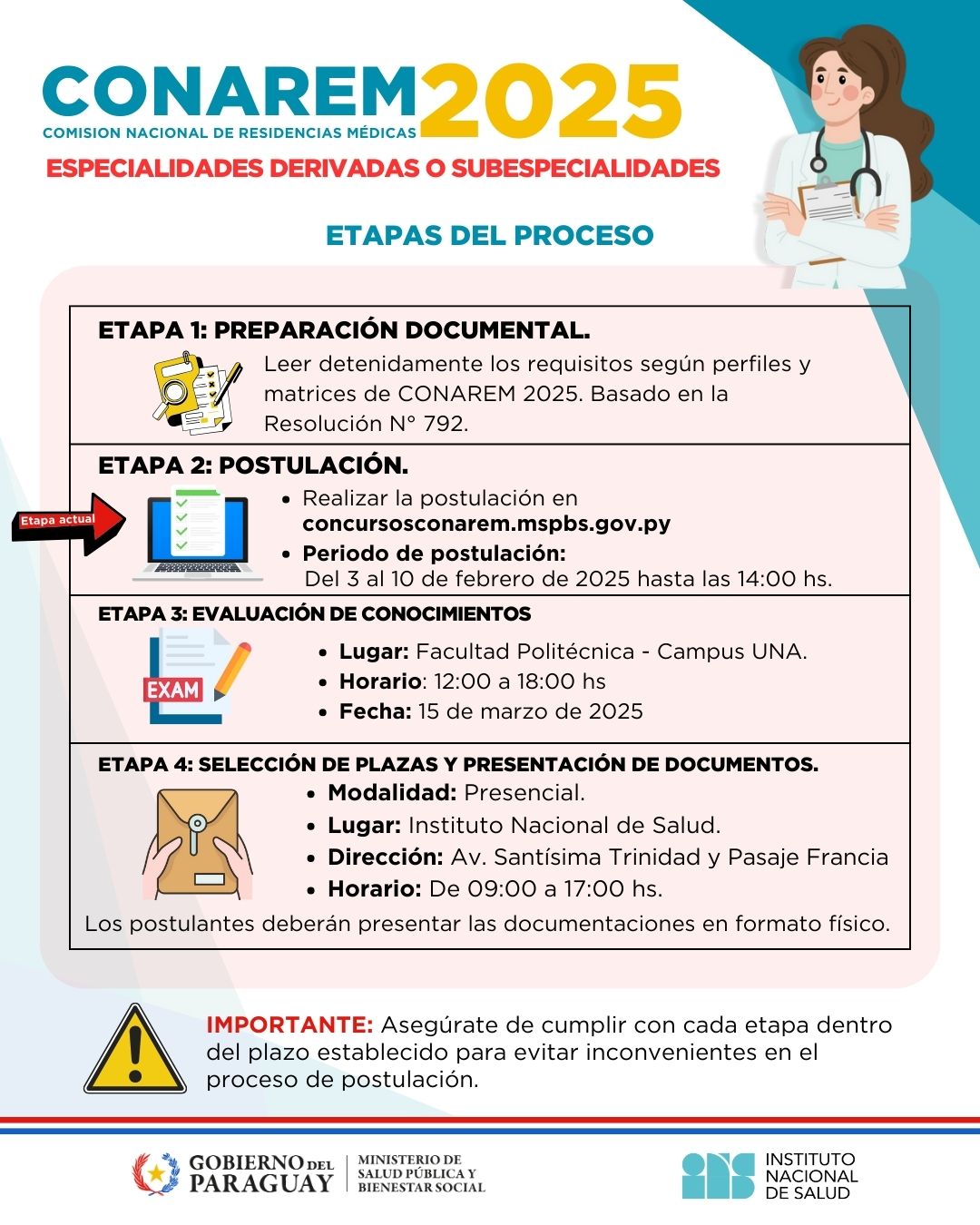 – Leer detenidamente los requisitos según perfiles y matrices de CONAREM 2025.
